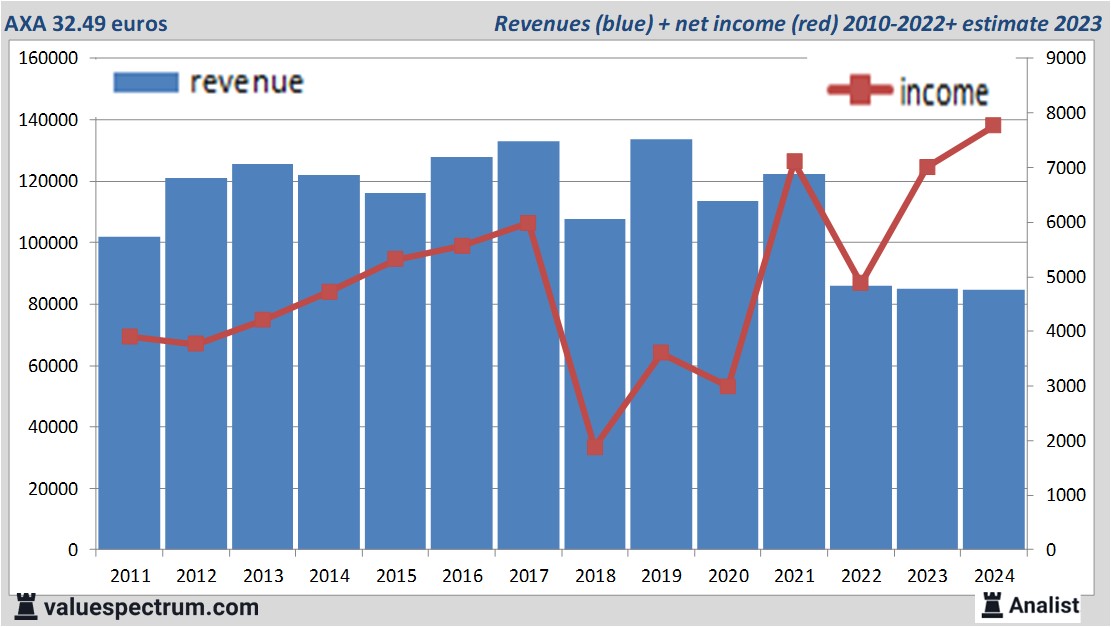 Morgen zal het Franse AXA haar cijfers over het afgelopen kwartaal aan de pers melden. Over 2024 verdient het bedrijf uit Parijs volgens de gepolste analisten uit op 84.74 miljard euro. Dit is licht minder dan de omzet over 2023 toen het bedrijf 85.11 miljard euro binnen kreeg.
