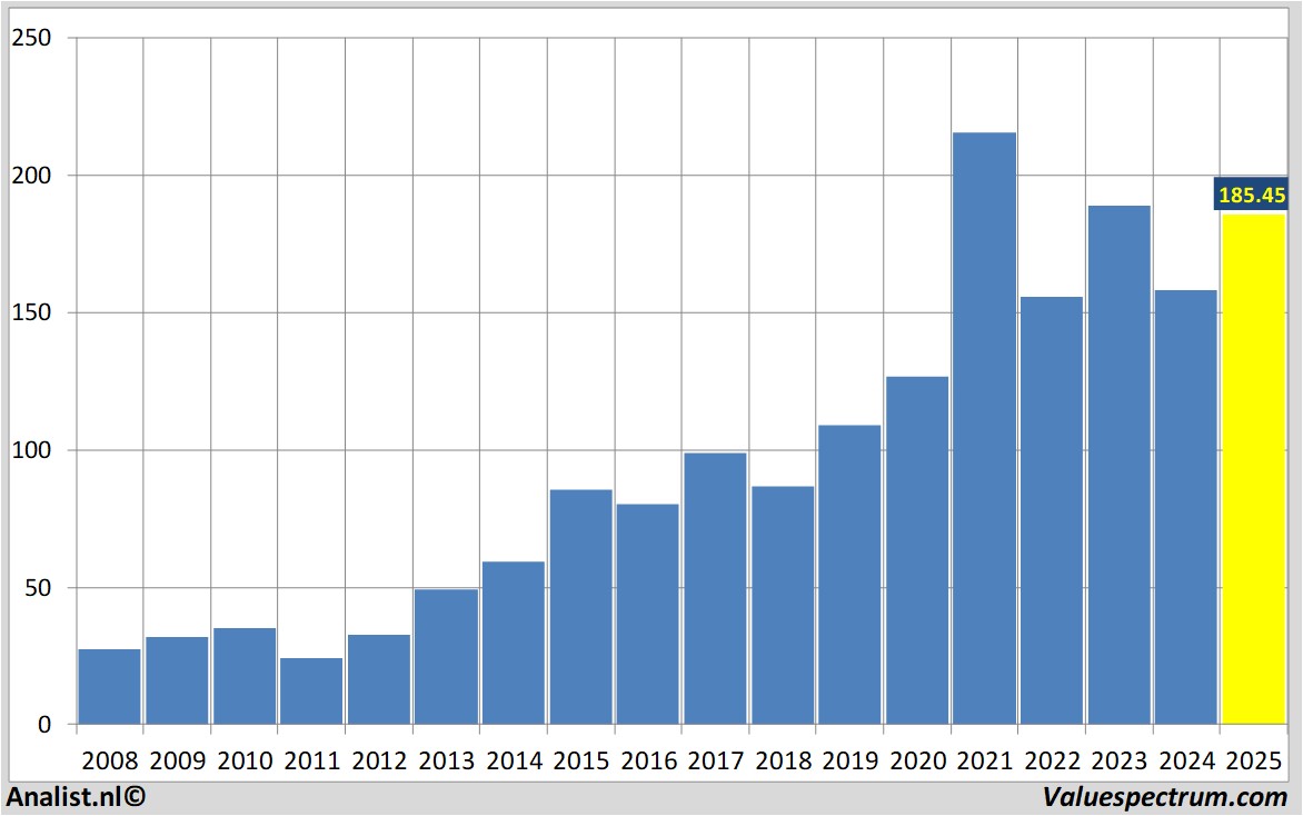 Het aandeel sloot maandag op 185.45 euro.