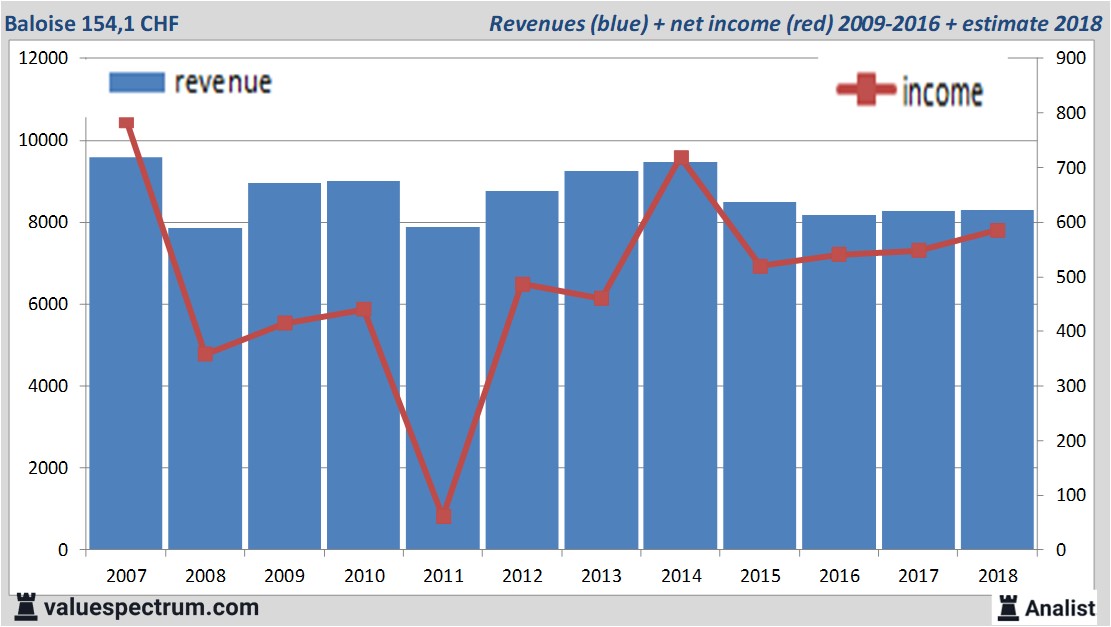 Baloise zal morgen haar resultaten over het voorbije kwartaal publiceren. De gemiddelde verwachting van de omzet over dit jaar ligt volgens de analisten op 8,3 miljard CHF. Dit is licht meer dan de omzet over 2017 toen het concern 8,28 miljard CHF verdiende.