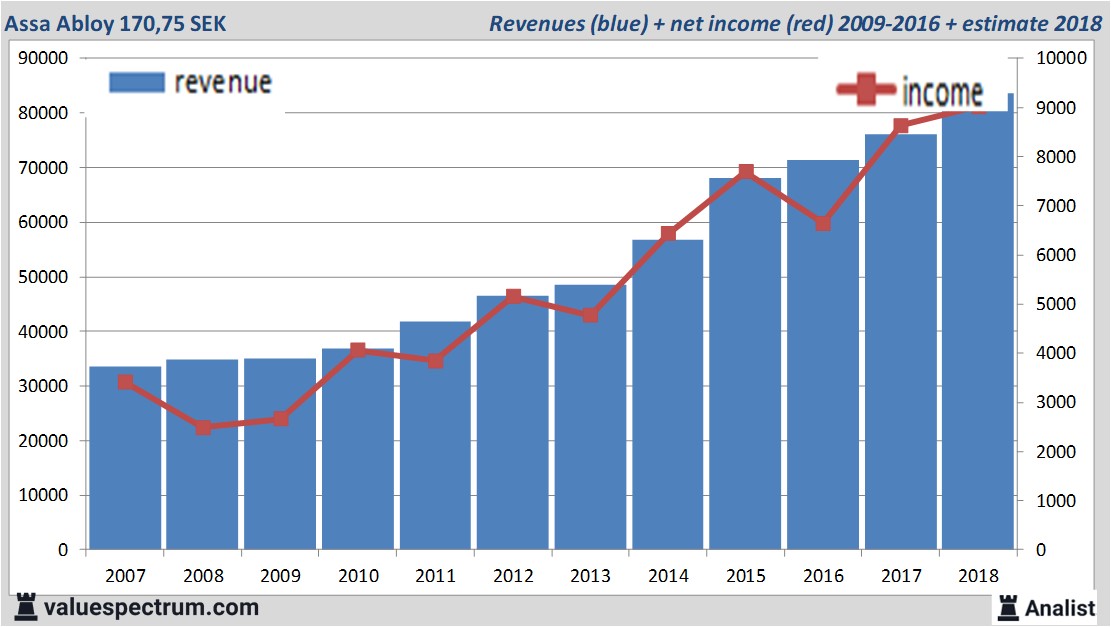 Morgen komt het Zweedse Assa Abloy haar resultaten over het afgelopen kwartaal. Over het huidige boekjaar komt de omzet volgens de analisten uit op 83,59 miljard SEK. Dit is beperkt meer dan de omzet over 2017 toen de omzet 76,14 miljard SEK bedroeg.