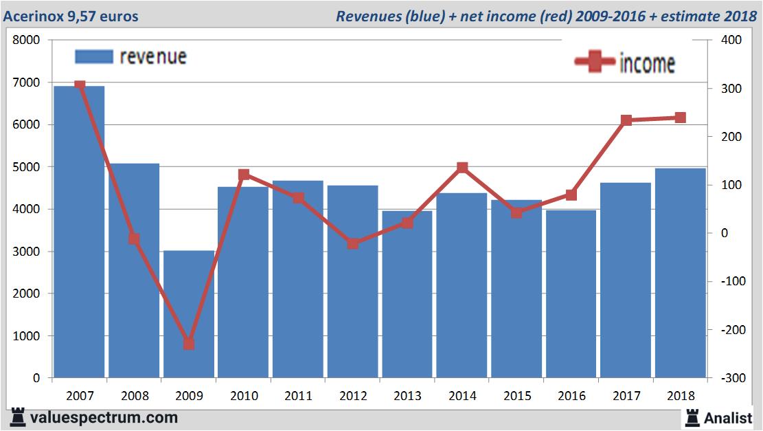 Morgen komt het Spaanse Acerinox met haar resultaten over het voorbije kwartaal. Over 2018 komt de omzet volgens de analisten uit op 4,97 miljard euro. Dit is vrij beperkt meer dan de omzet over 2017 toen de omzet 4,63 miljard euro bedroeg.
