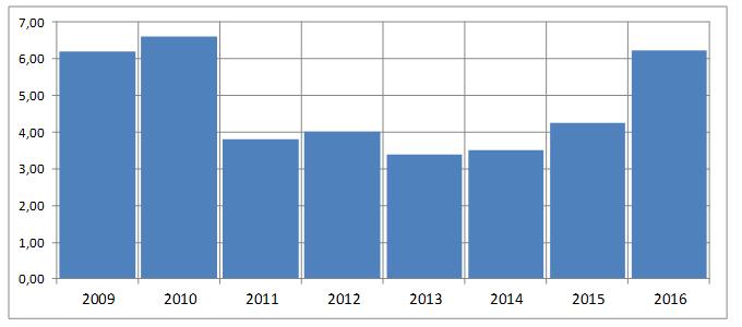 Over 2016 komt de omzet volgens de analisten uit op 51,68 miljard euro. Dit is licht meer dan de omzet over 2015 toen het bedrijf 47,22 miljard euro verdiende.