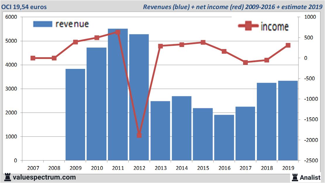OCI gaat morgen haar cijfers over het voorbije kwartaal bekend maken. Over het huidige boekjaar komt de omzet volgens de analisten uit op 3,33 miljard euro. Dit is licht meer dan de omzet over 2018 toen het concern 3,25 miljard euro verdiende.
