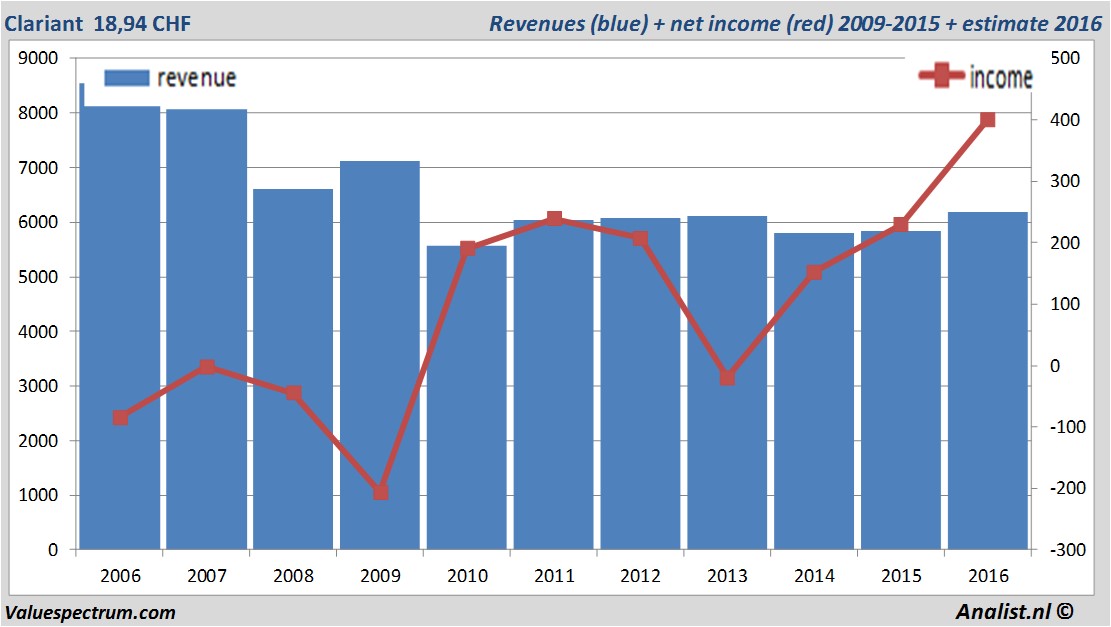 Morgen komt het Zwitserse bedrijf Clariant met haar resultaten over het afgelopen kwartaal. De omzet van Clariant over dit jaar komt uit op 6,19 miljard CHF. Zo blijkt uit gemiddelde analistenverwachting. Dit is beperkt meer dan de omzet over 2015 toen het bedrijf 5,81 miljard CHF verdiende.