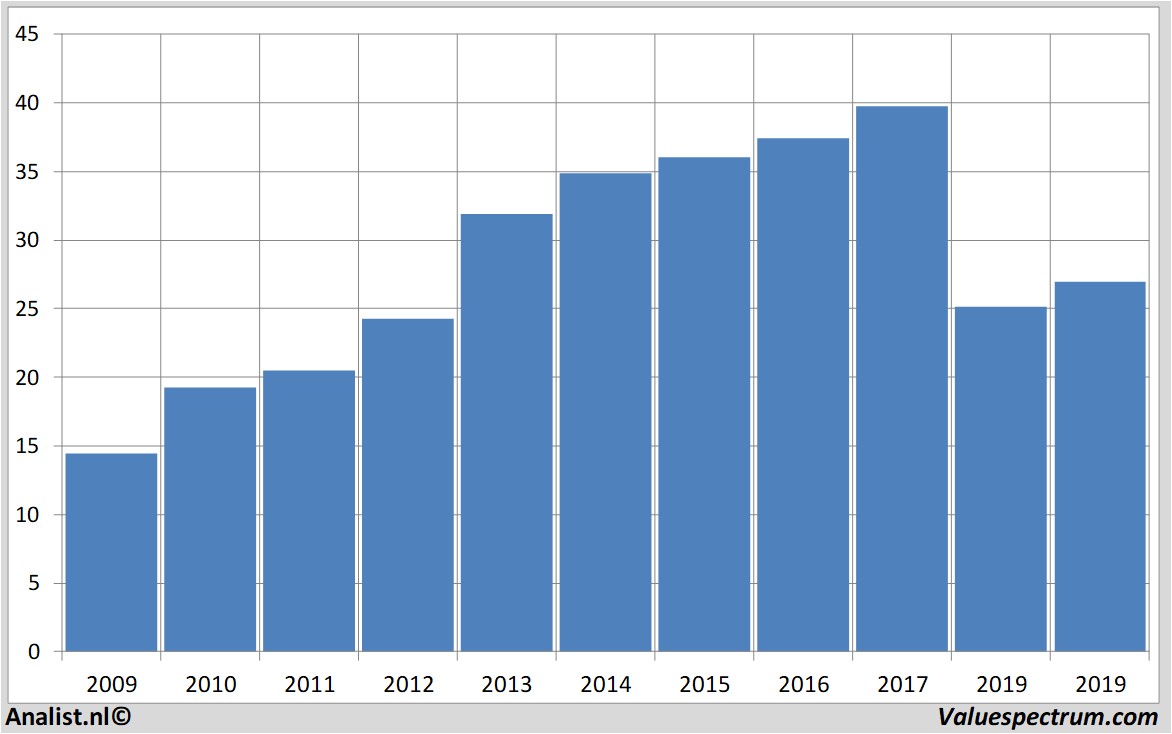 Onderaan de streep rekenen de analisten op een nettowinst van 209 miljoen euro. Over dit jaar wordt door het gros van de analisten een winst per aandeel van 1,17 euro verwacht. De koerswinstverhouding komt zodoende op 23,01 te liggen.