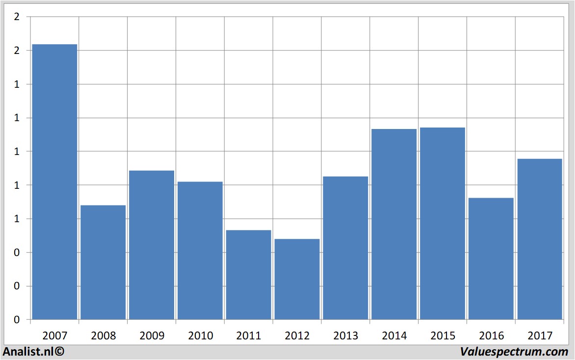 De analisten gaan voor 2017 uit van een nettowinst van 144 miljoen euro. Over dit jaar koerst het bedrijf volgens de analisten af op een winst per aandeel van 7 cent. Op basis hiervan komt de koers/winstverhouding op 13,71 te liggen.