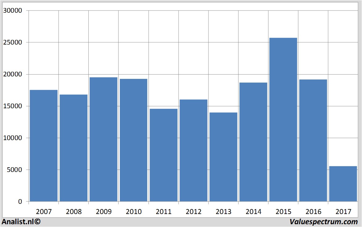 De analisten rekenen voor 2017 op een recordnettowinst van 4,49 miljard dollar. Over dit jaar komt het bedrijf volgens het gros van de analisten uit op een winst per aandeel van 4,42 dollar. De koerswinstverhouding komt zodoende op een erg hoge 1263,35 te liggen.