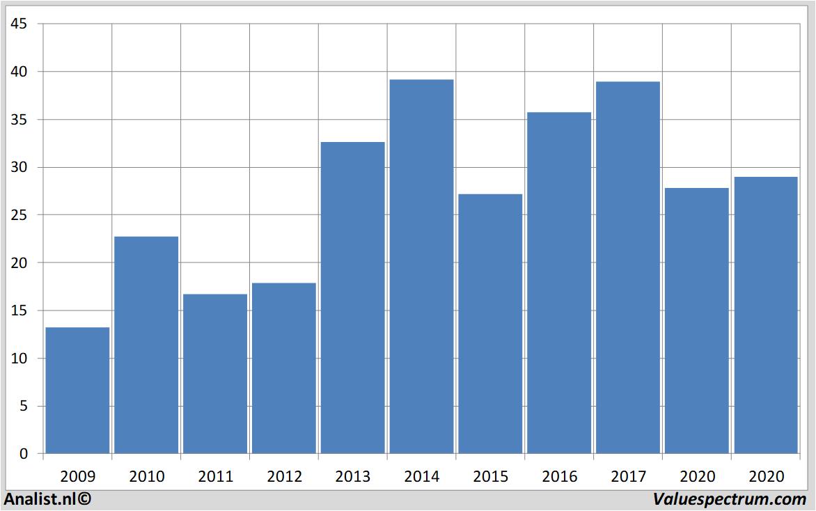 De analisten rekenen voor 2020 op een nettowinst van 143 miljoen euro. Op basis van de meest actuele analistenconsensus een houdt het bedrijf een winst per aandeel van 2,4 euro over. Op basis hiervan komt de koerswinstverhouding op 12,09 uit.