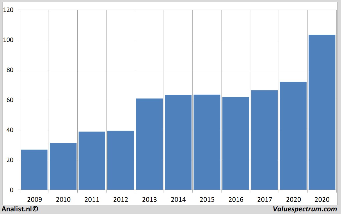 De analisten gaan voor 2020 uit van een nettowinst van 913 miljoen euro. Gezien de laatste analistenconsensus heeft het bedrijf dit jaar een winst per aandeel van 4,86 euro. De koerswinstverhouding komt zodoende op 21,7 te liggen.