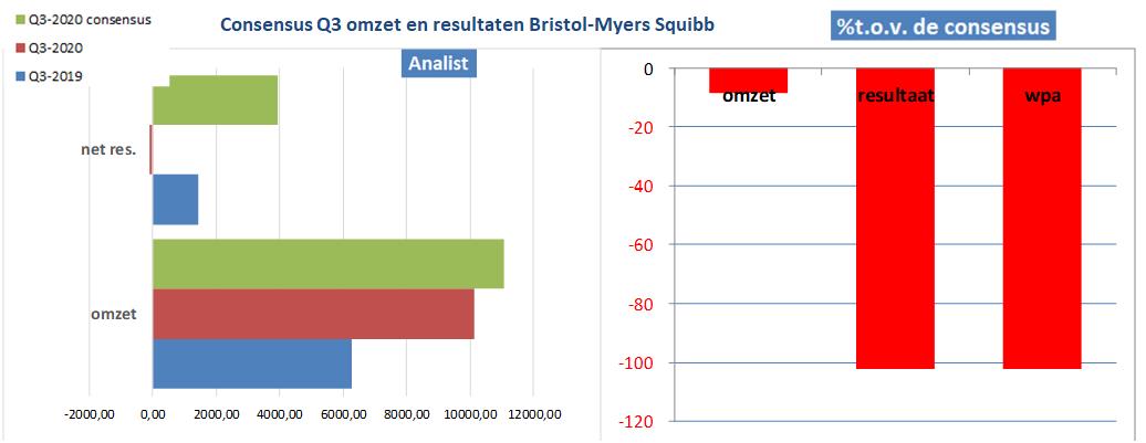 Bristol-Myers Squibb 's omzet over het voorbije kwartaal was beperkt minder dan de meeste analisten op Wall Street verwacht hadden. De omzet klom van 6,27 miljard dollar naar 10,13 miljard dollar. De gemiddelde verwachting van de analisten lag op 11,08 miljard dollar.