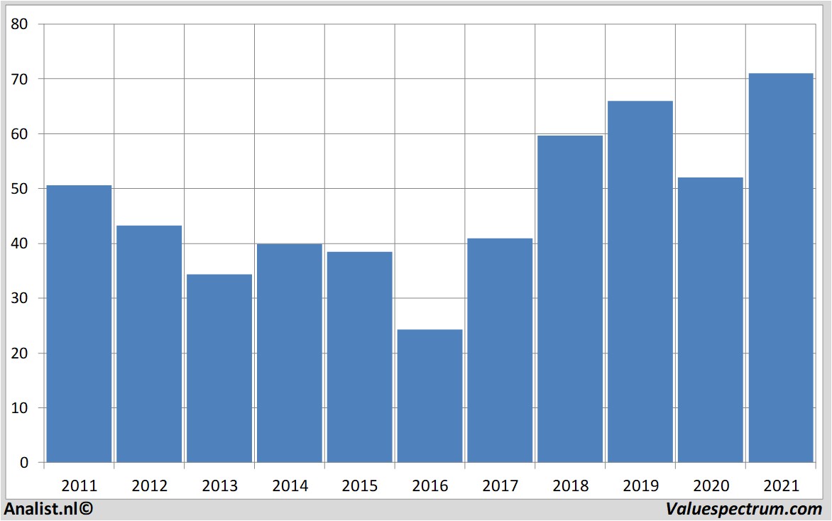 De meeste analisten gaan voor 2020 uit van een nettowinst van 871 miljoen dollar. Op basis van de meest actuele analistenconsensus een houdt het bedrijf een winst per aandeel van 3.89 dollar over. Op basis hiervan komt de koerswinstverhouding op 18.27 uit.