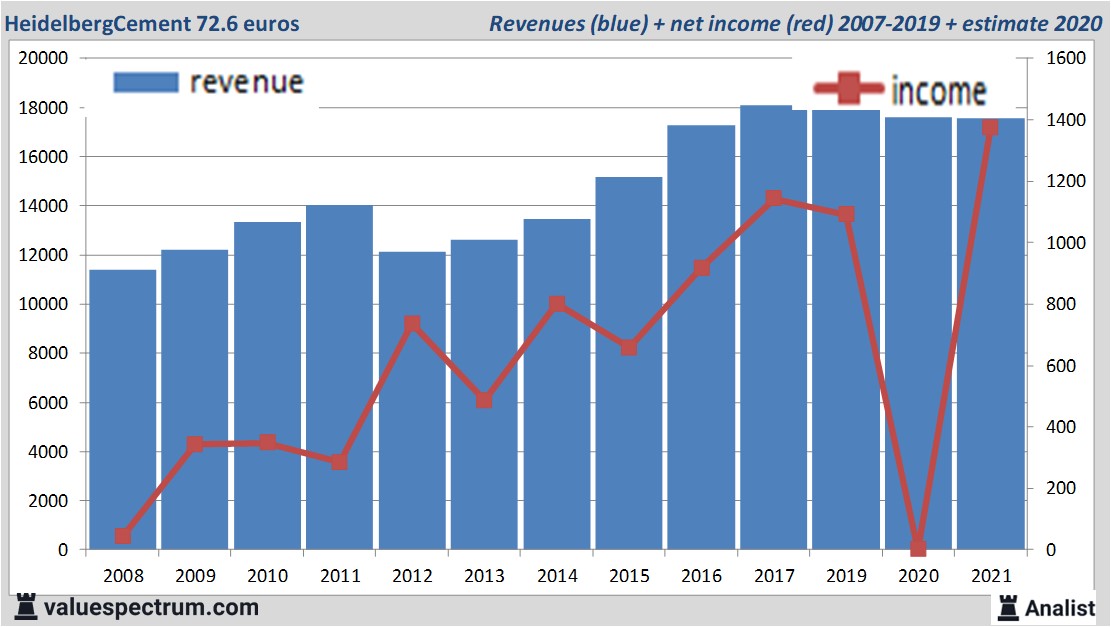 Morgen zal het Duitse HeidelbergCement met haar resultaten over het afgelopen kwartaal komen. Over het huidige boekjaar komt de omzet van het bedrijf uit Heidelberg volgens de analisten uit op 17.57 miljard euro. Dit is vrij beperkt minder dan de omzet over 2020 toen het concern 17.61 miljard euro verdiende.
