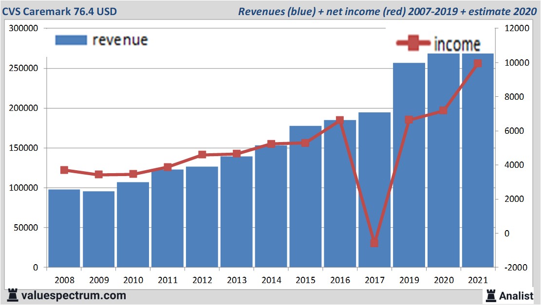 Over dit jaar ligt de verwachting van het dividend op 2.01 dollar. CVS Caremark 's dividendrendement bedraagt dus momenteel 2.63 procent. Het gemiddelde dividendrendement van de algemene detailhandel ligt op een relatief royale 1.54 procent.