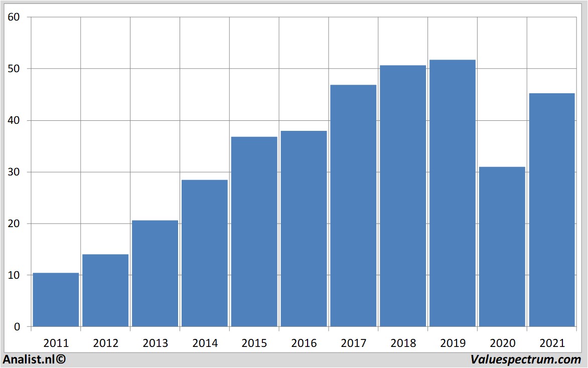 Op basis van het huidige aantal uitstaande aandelen bedraagt de beurswaarde van het bedrijf 1.21 miljard euro. 46