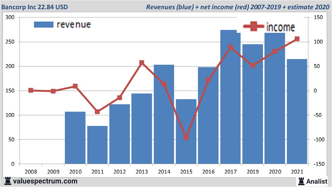 Historische omzetten en resultaten Bancorp Inc in beeld plus taxaties 2021