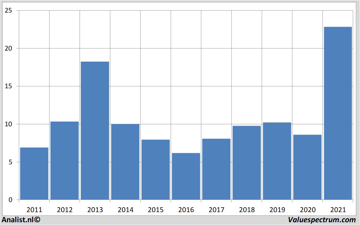 De analisten rekenen voor 2021 op een nettowinst van 106 miljoen dollar. Over dit jaar wordt door het gros van de analisten, zoals gepolst door persbureau Thomson Reuters, een winst per aandeel van 1.8 dollar verwacht. De koers-winst-verhouding ligt hiermee op 12.69.