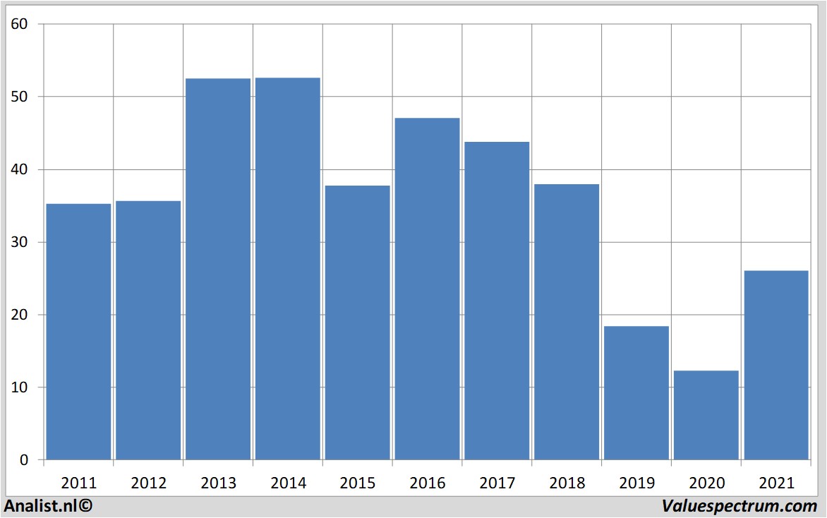 De meeste analisten rekenen voor 2021 op een nettowinst van 937 miljoen dollar. Over dit jaar wordt door het gros van de analisten, zoals gepolst door persbureau Thomson Reuters, een winst per aandeel van 1.05 dollar verwacht. Op basis hiervan komt de koerswinstverhouding op 24.77 te liggen.
