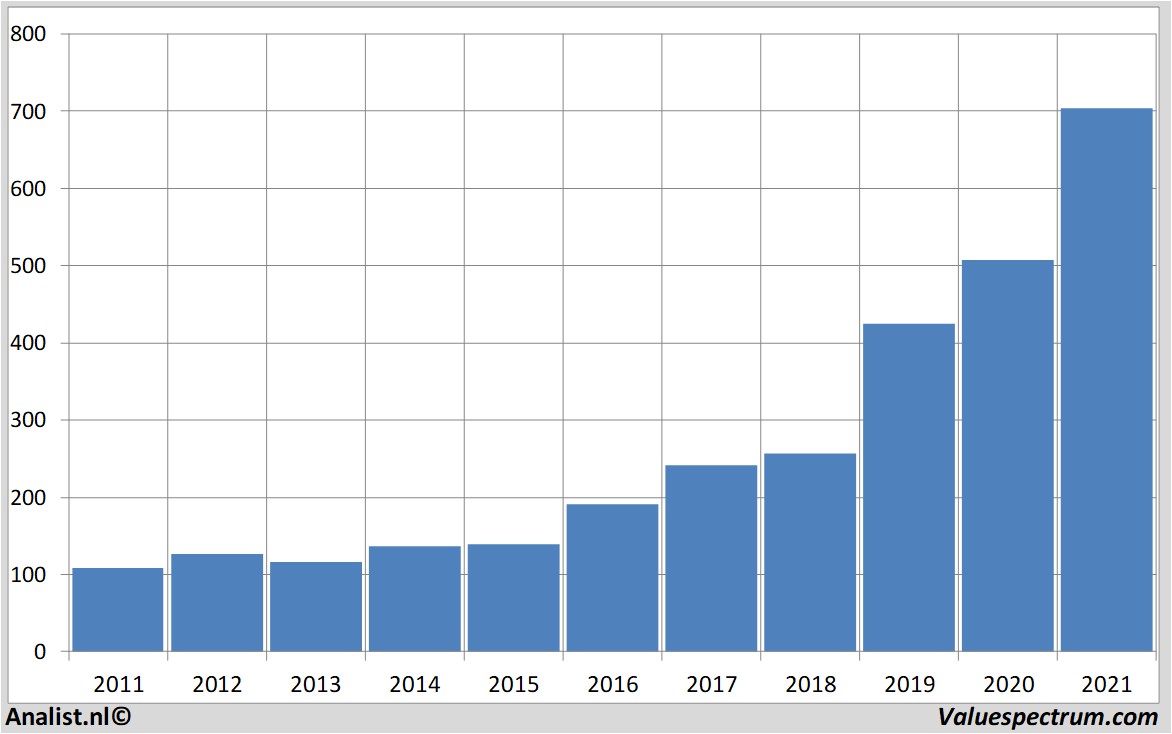 De analisten rekenen voor 2021 op een nettowinst van 10.77 miljard euro. Over dit jaar wordt door het gros van de analisten, zoals gepolst door persbureau Thomson Reuters, een winst per aandeel van 21.23 euro verwacht. Zodoende komt de koerswinstverhouding op 33.16 uit.