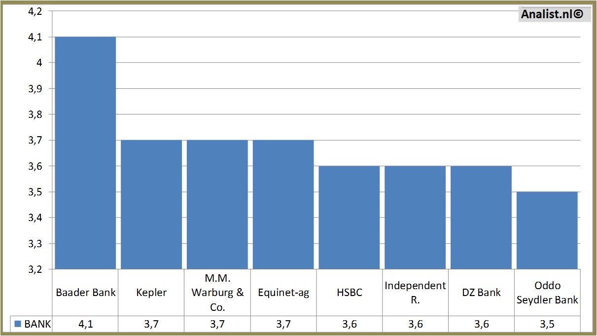 Het aandeel Heidelberger Druckmaschinen zou nu met een korting noteren. De meeste analisten vinden het aandeel Heidelberger Druckmaschinen op dit niveau momenteel goedkoop. Het aandeel wordt momenteel door 11 analisten gevolgd (op basis van fundamentele analyse). De adviezen bestaan uit: 1 keer verkoop, 2 keer houd en geen koopadviezen. Het gemiddelde van de uitstaande koersdoelen voor het aandeel staat op 3,49 euro. Dit is ruim 22 procent meer dan de huidige beurskoers van 2,86 euro. HSBC , Kepler Capital Markets en Commerzbank gaven onlangs taxaties voor het aandeel.