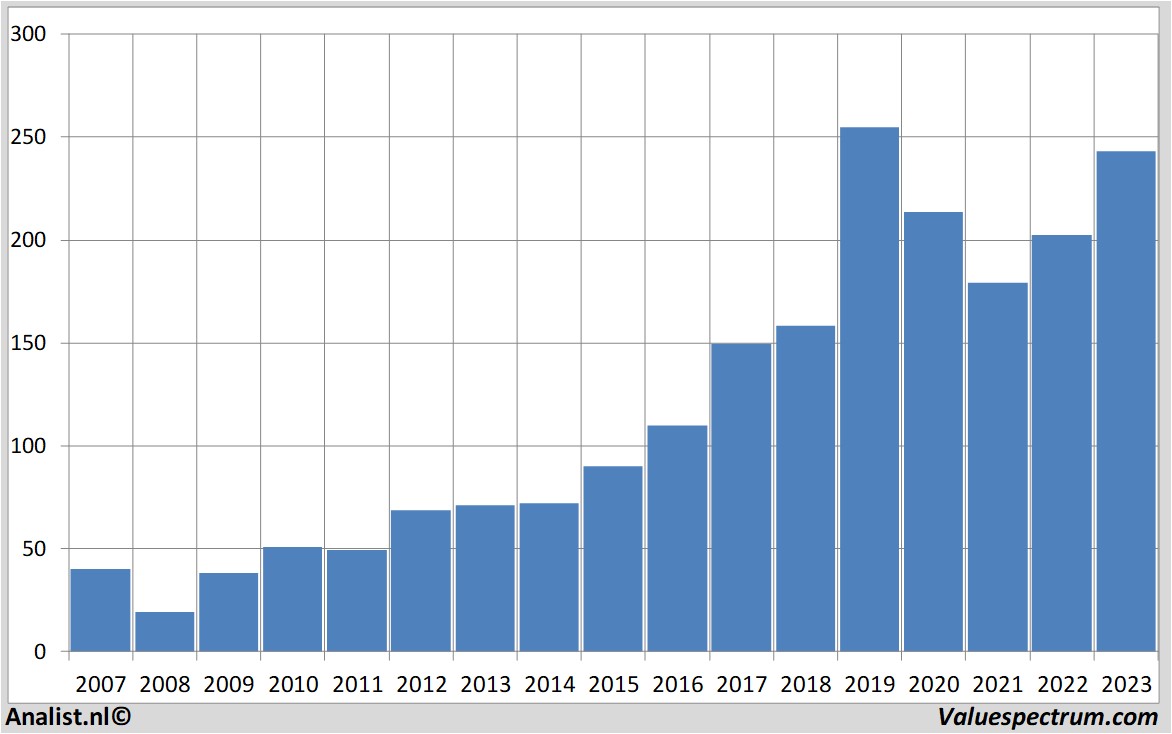 De analisten gaan voor 2023 uit van een nettowinst van 554 miljoen euro. Over dit jaar wordt door het gros van de analisten een winst per aandeel van 10.41 euro verwacht. Op basis hiervan komt de koerswinstverhouding uit op 23.37.